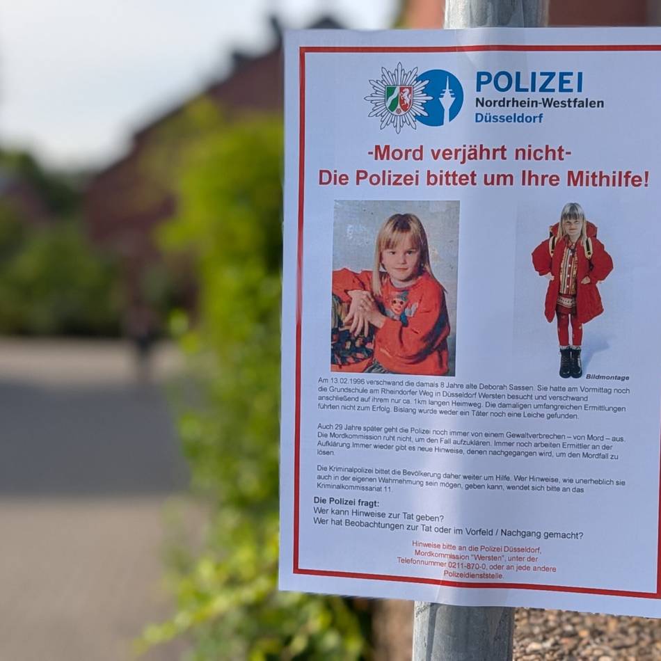 AKTEDebbie Sassen - 20 Jahre UngewissheitStaffel 2016 • 29.06.2016 • 00:15© Sat.1Debbie war 8 Jahre alt, als sie ihr Schulgebäude verließ, um zum Mittagessen nach Hause zu gehen. Dort ist sie nie angekommen. Eine großangelegte Suche brachte keine Resultate. Bis heute gibt ihr Verschwinden Rätsel auf.https://www.sat1.de/tv/akte/video/2016-d...gewissheit-clip